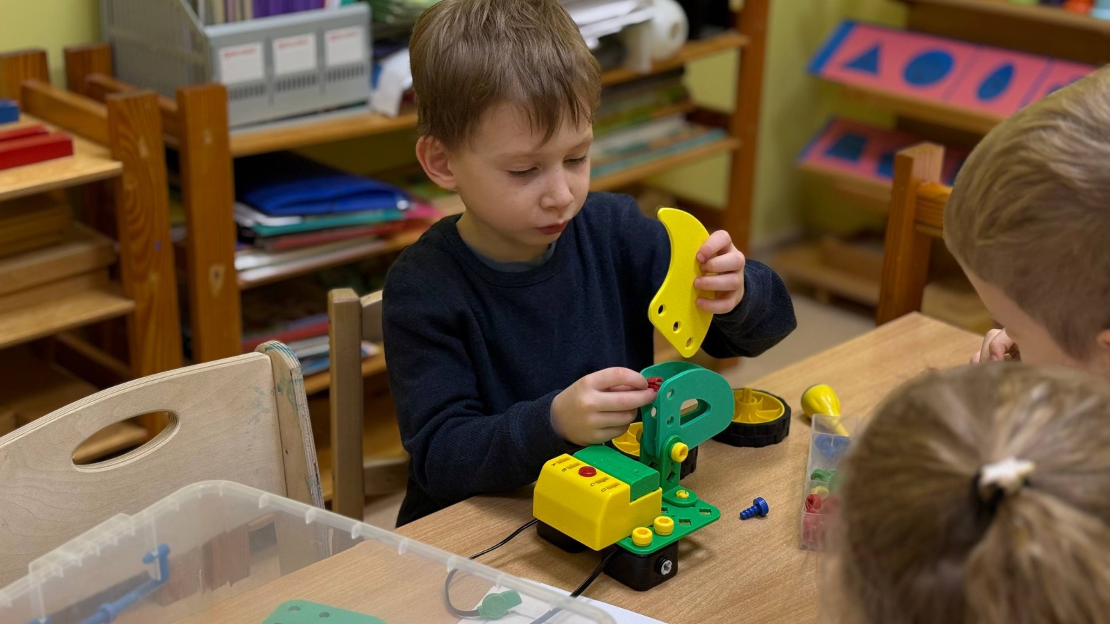На занятиях по конструированию дети изучают сенсорные эталоны (цвет, форму, размер, ориентирование в пространстве) и знакомятся с основами конструирования, решают коллективные задачи, что учит детей умению договариваться, выслушивать и уважать чужую точку зрения. Конструирование по замыслу поддерживает инициативность, самостоятельность, творческие проявления.
