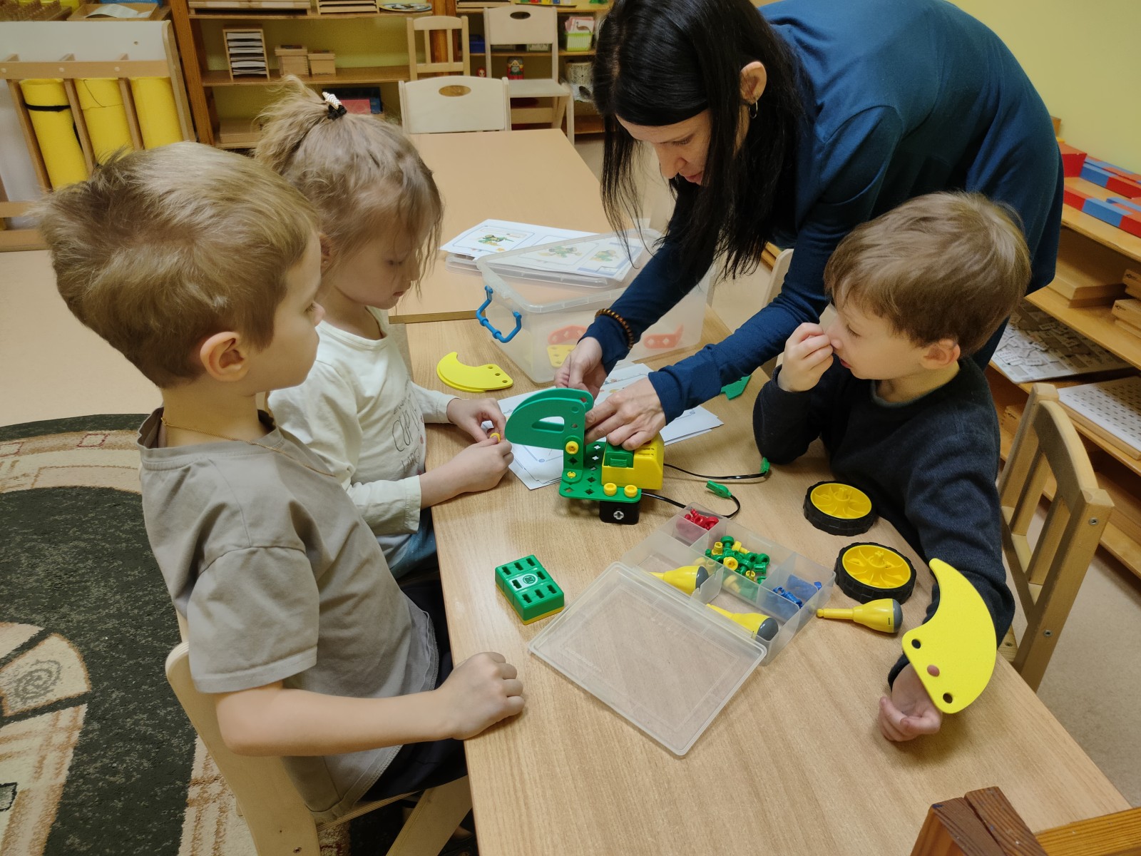 На занятиях по конструированию дети изучают сенсорные эталоны (цвет, форму, размер, ориентирование в пространстве) и знакомятся с основами конструирования, решают коллективные задачи, что учит детей умению договариваться, выслушивать и уважать чужую точку зрения. Конструирование по замыслу поддерживает инициативность, самостоятельность, творческие проявления.